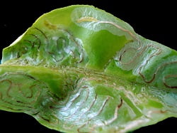 Μικρή μύγα, προσβάλλει τα φύλλα των φυτών και δημιουργεί χαρακτηριστικές στοές, με συνέπεια να μειώνεται η φωτοσυνθετική δραστηριότητα τα φύλλα εξασθενούν με αποτέλεσμα να ξηραίνονται.