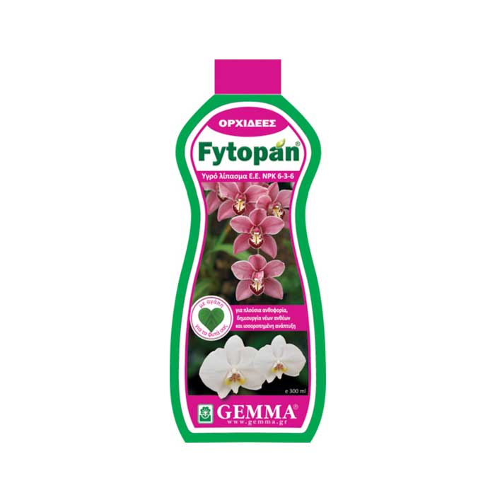 Το βασικό λίπασμα Fytopan για ορχιδέες είναι ένα σύνθετο, εμπλουτισμένο με ιχνοστοιχεία και εκχύλισμα φυκιών, το οποίο εξασφαλίζει την ισορροπημένη ανάπτυξη και πλούσια ανθοφορίας με παραγωγή νέων ανθών στα περισσότερα είδη ορχιδέας.