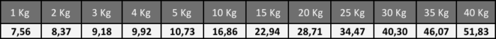The cost is calculated according to the following chart, incremented by the monthly fuel surcharge, posted in the ACS webpage. The final cost might be different as the orders are also measured by volume and not only by weight.