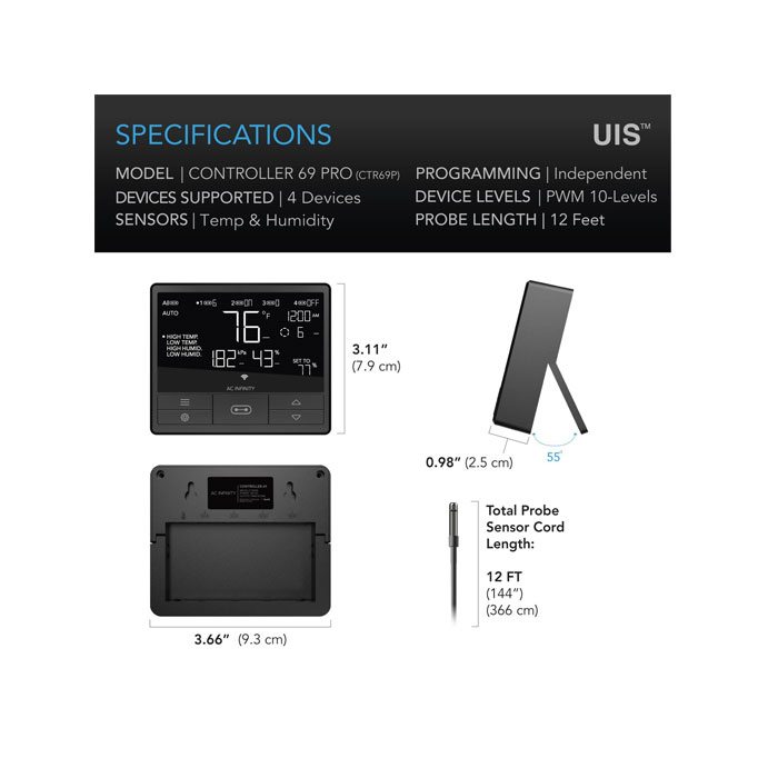 The AC Infinity CONTROLLER 69 PRO is a next-generation digital smart controller designed to deliver precise and fully automated environmental control for indoor growing spaces, HVAC installations, and professional applications.