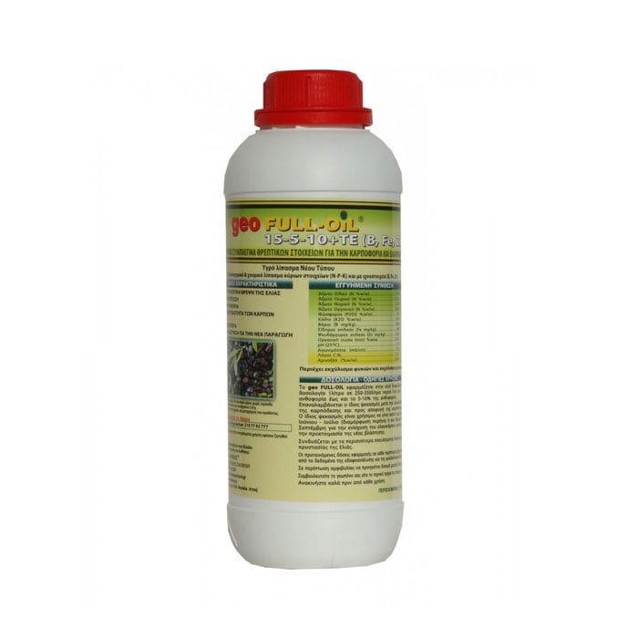 geo Full-oil distinguishes itself as it combines perfectly all the necessary macroelements Fe, Zn and special B trace elements where together with a special organic complex of amino acids, humic substances and natural vitamins make it a unique product, indispensable for olive trees.