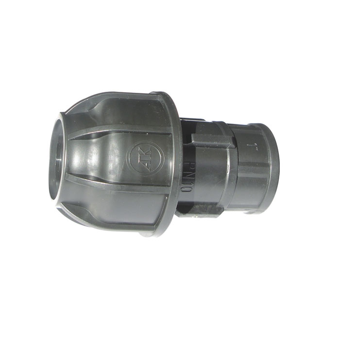 Plastic irrigation tube fitting for connecting 20mm polyethylene tubes to female water taps