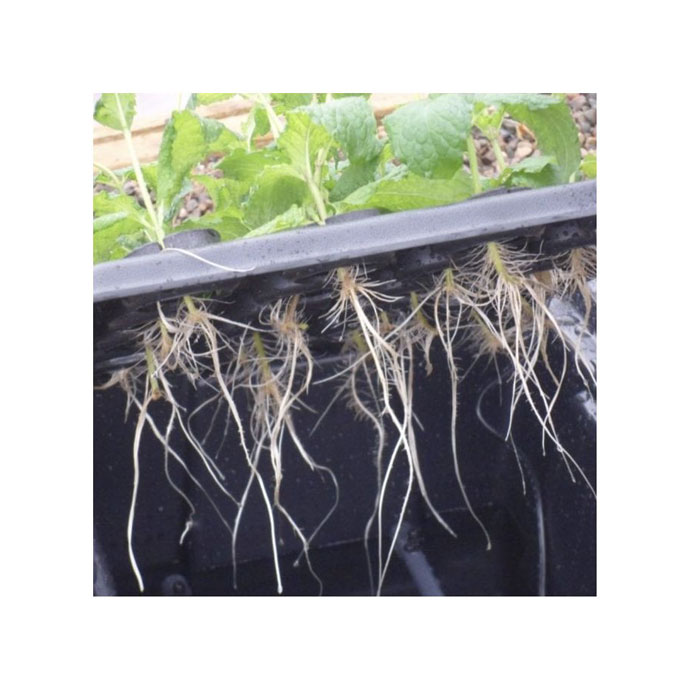 The constant supply of nutrient, water and oxygen, combined with the lack of restrictive growing medium, encourages roots to develop rapidly as they ‘push out’ to access the nutrient solution.